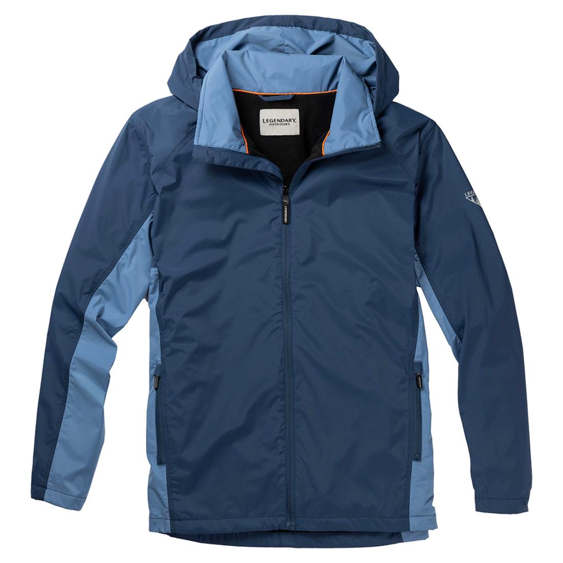 Unpredictable weather? No problem. Our Men's Hooded Rain Jacket, with a durable water-resistant finish, is windproof and 100% breathable. Stretch inserts under the arms provide mobility, while the reflective Legendary patch enhances visibility. Secure your essentials in the side pockets, and when the skies clear, pack away the hood with ease.